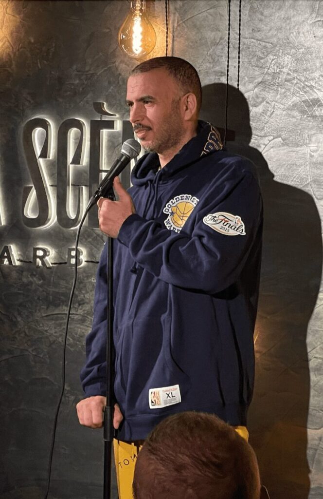 Lotfi Abdelli acteur et humoriste à d’abord fait carrière en Tunisie, il apporte une touche unique au stand-up français grâce à son humour provocateur, mêlant satire sociale, autodérision et critique politique. Son parcours d’acteur et de danseur enrichit sa présence scénique, lui donnant une gestuelle expressive et une énergie singulière. Avec un regard affûté sur l’identité, l’immigration et les tabous culturels, il brise les conventions en traitant de sujets souvent sensibles avec audace et spontanéité. Son ton libre et sans filtre, influencé par son expérience en Tunisie, lui permet de se démarquer dans le paysage du stand-up francophone en offrant un humour percutant et engagé.